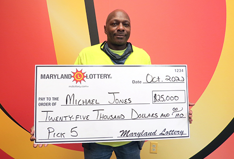 Michael Jones of Baltimore, who has a habit of noting people’s license tag numbers, found a $25,000 Pick 5 prize by playing a random tag number.
